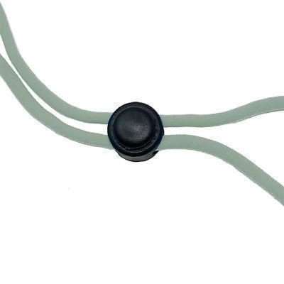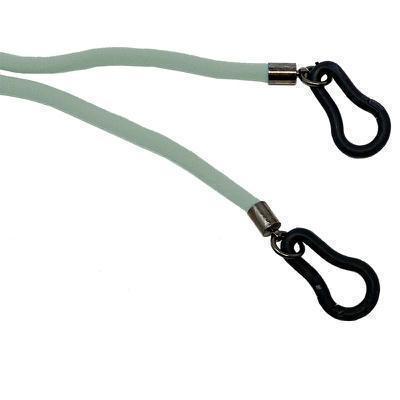 - Sujete los ganchos pequeños a las bandas elásticas de su protección facial. Como un retenedor de gafas, simplemente deslícelo sobre su cabeza y úselo como un collar. Funcionará con su protector de orejas o diadema existente