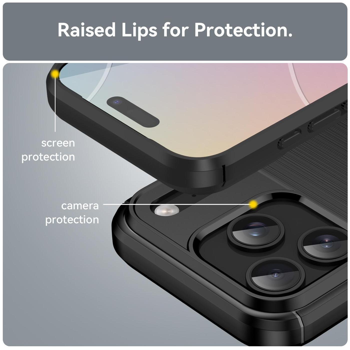 Funda silicona iPhone 17 Pro Max, alta protección e inserciones símil a fibra de carbono negro