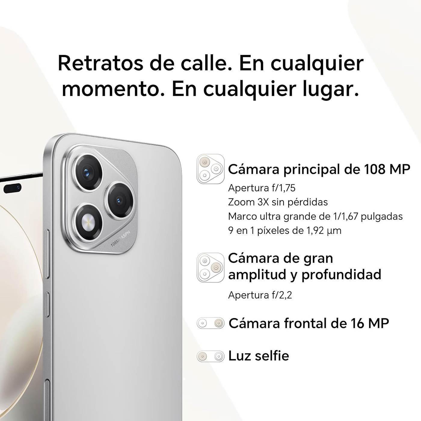Cámara principal de 108 MP con lente f/1.75, estabilización y zoom 3× sin pérdida, junto a un sensor ultra‑gran angular/de profundidad de 5 MP; cámara frontal de 16 MP con luz selfie integrada .