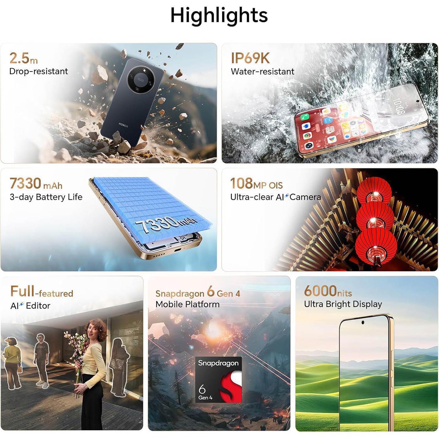 El dispositivo incluye conectividad 5G, Wi-Fi de alta velocidad, Bluetooth y GPS, garantizando una comunicación rápida y estable. Funciona con Android junto a la capa MagicOS, que proporciona una interfaz fluida, optimizada y con funciones inteligentes para mejorar la experiencia de usuario.