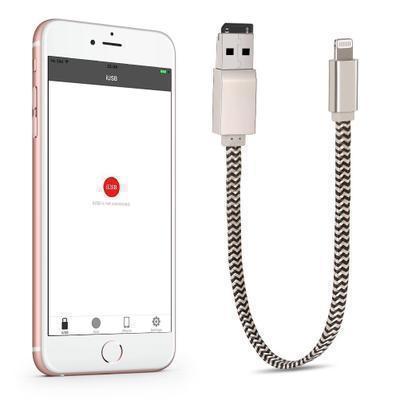 Descargue la aplicación gratuita iUSB a través de App Store. A continuación, insertar la tarjeta de memoria Micro SD en la ranura de la tarjeta dentro del conector USB y conecte el cable en el dispositivo. Es compatible con varios formatos de archivo. Fácil transferencia de datos sin iTunes, conexiones de red y sin necesidad de jailbreak.