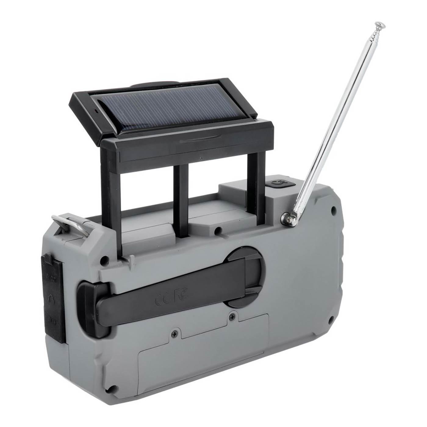 Gracias a su batería recargable de 4000 mAh, su panel solar integrado y la manivela manual, nunca te quedarás sin energía. Además, cuenta con una potente linterna con 3 niveles de brillo, luz de lectura ajustable y función de alarma SOS (luz + sonido), perfecta para situaciones críticas.