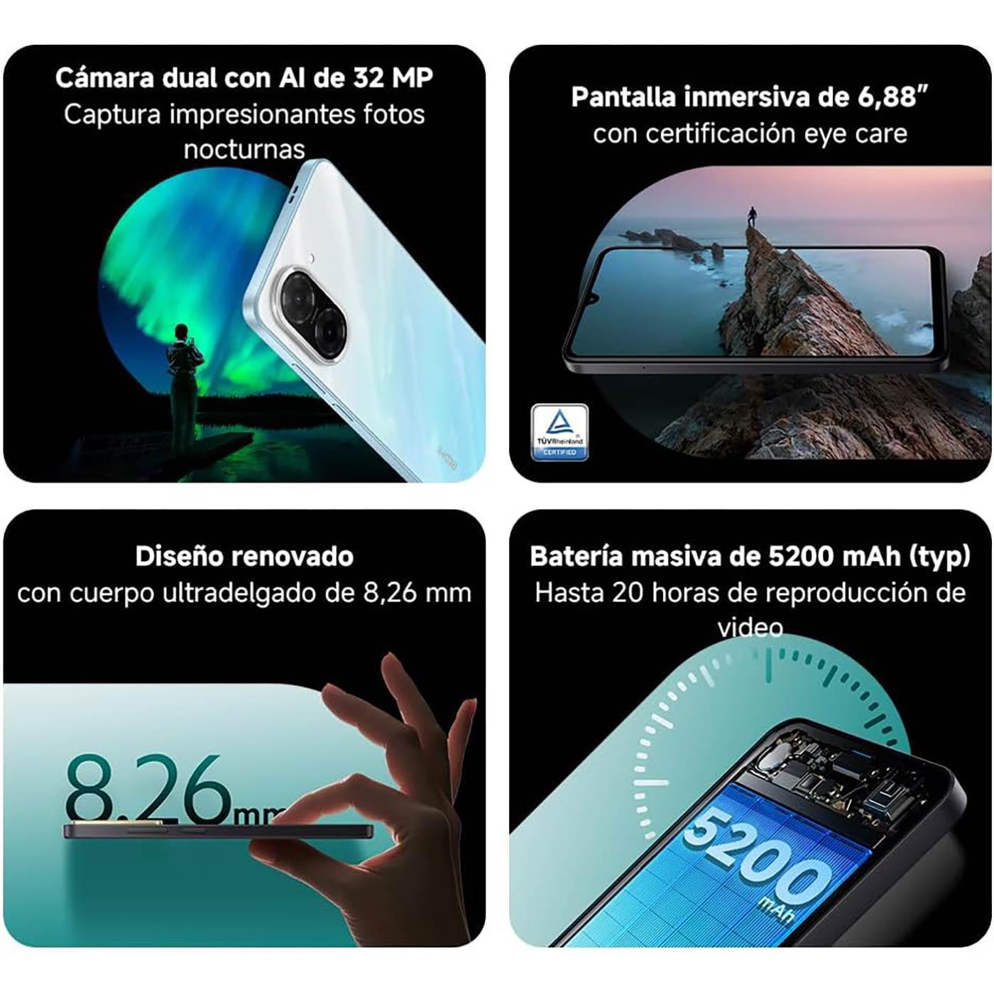 Opciones de Memoria: Disponible en configuraciones de 3 GB + 64 GB y 4 GB + 128 GB, con posibilidad de expansión de RAM hasta 8 GB mediante memoria virtual, mejorando la multitarea y la fluidez del sistema.